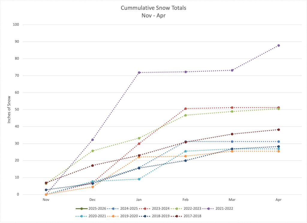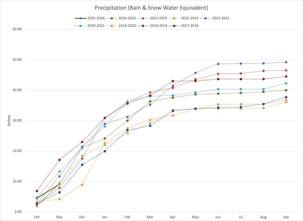 • Precip – total amount of rain and snow water equivalent (SWE) in inches