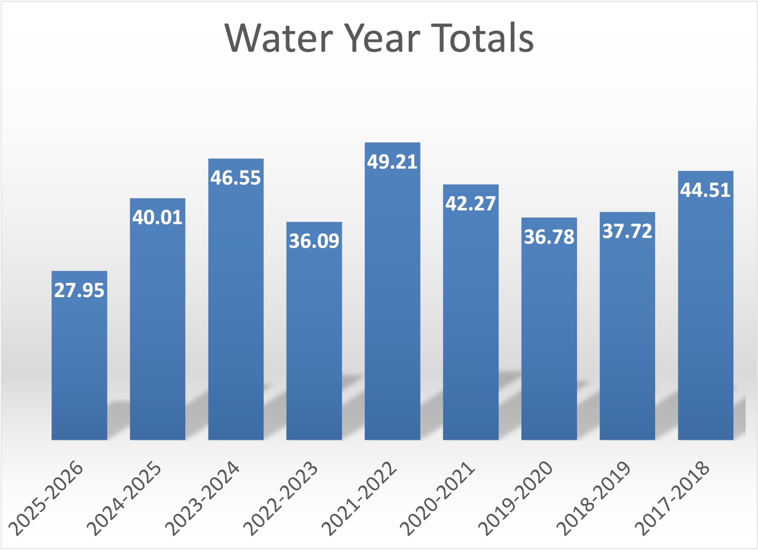 Water years are defined as precipitation (rain and snow water equivalent) that fall between October 1st and September 30th.